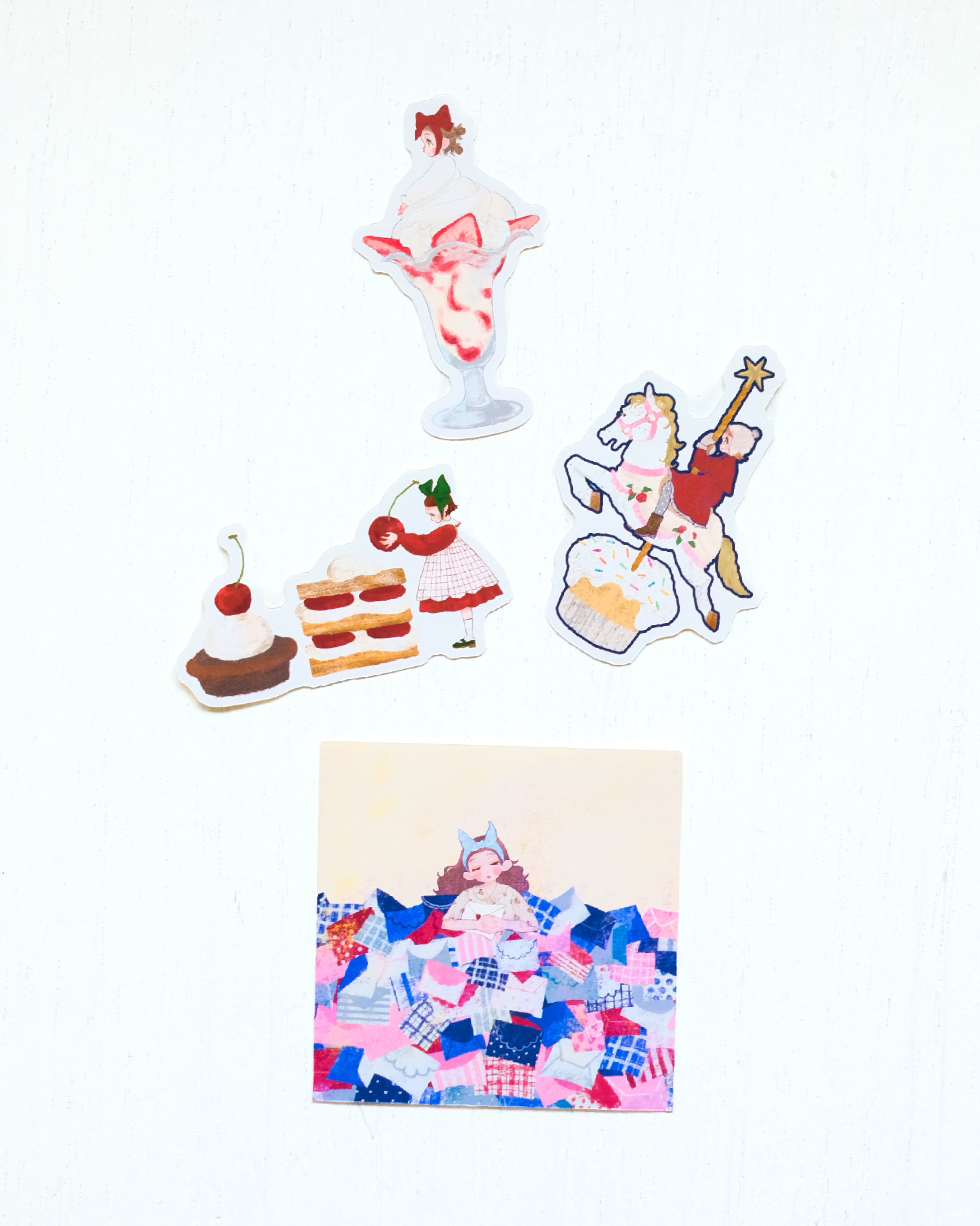 やぎあかりさんが描く甘いスイーツと女の子のイラストフレークシール